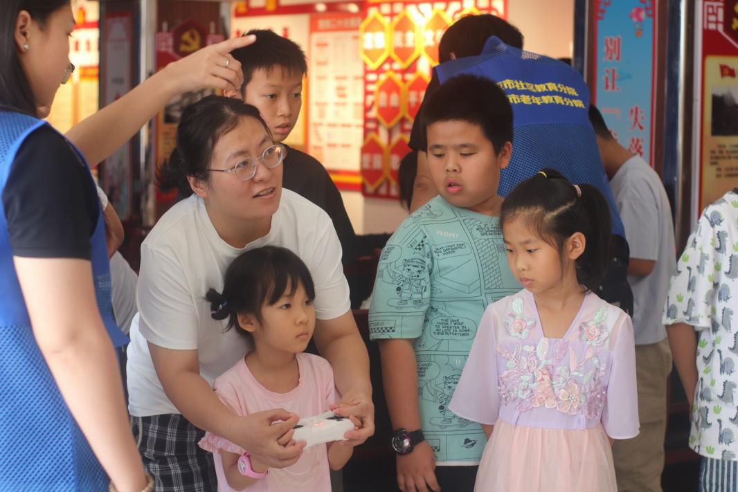 (助教老师们指导社区小朋友和家长操作足球无人机)